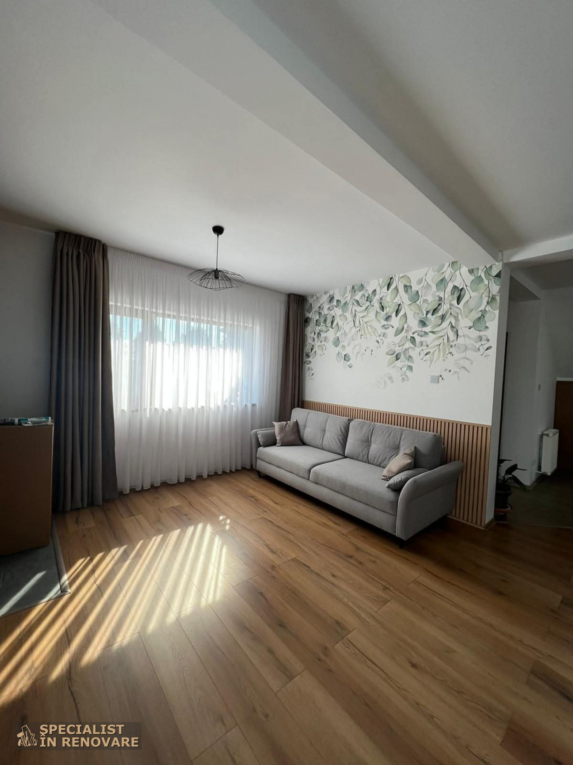 Acest proiect de renovare s-a concentrat pe alegerea materialelor si pe executia detaliata, pentru a crea un spatiu coerent si functional. Toate elementele au fost gandite pentru a fi estetice si practice, de la pardoseala durabila din laminat pana la finisajele ecologice ale peretilor si corpurile de iluminat economice.